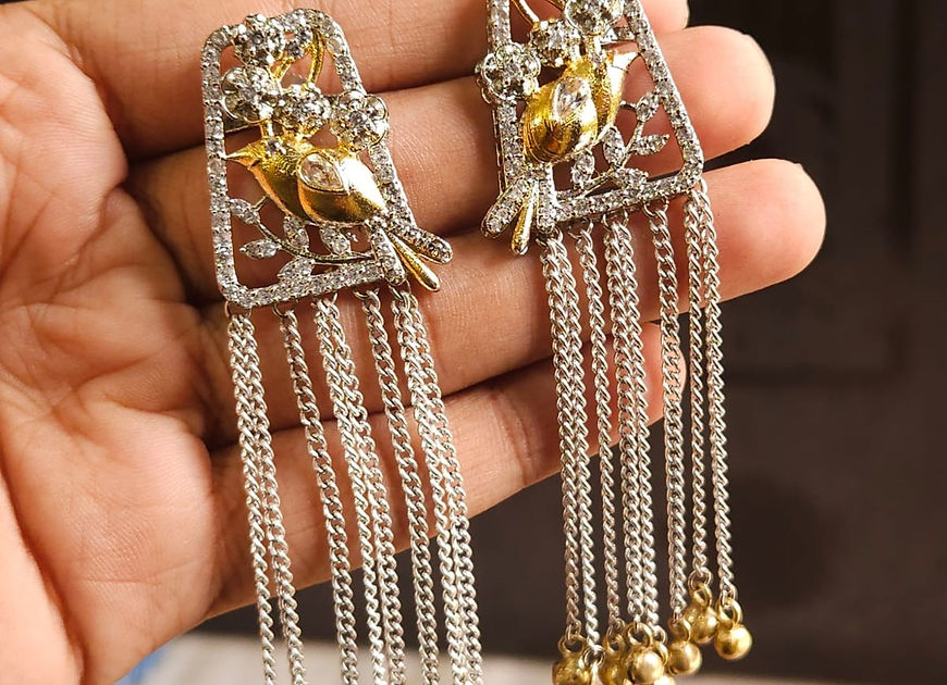 Embrace the fashion forever with this Exclusive Dual tone Ad stone studded Bird long earrings!! A hint of grace, Adorn yourself with timeless beauty in every place!!