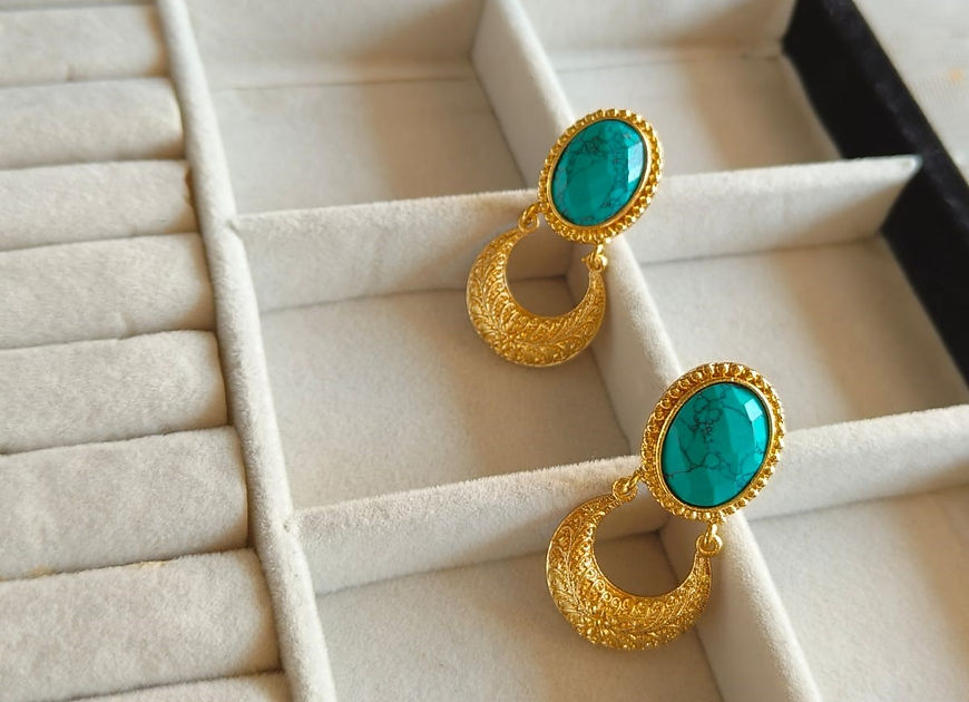 Chakor Green Illuminating dangle earrings are 22K gold Plated Brass Adorned with Green Monalisa Stone are perfect companion to give you a classy n Ethnic look!!