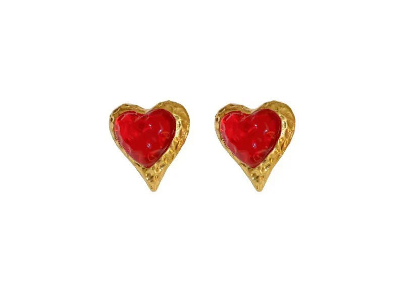 Let your heart shine and eyes sparkle with our Corozon red heart Stud earrings!!