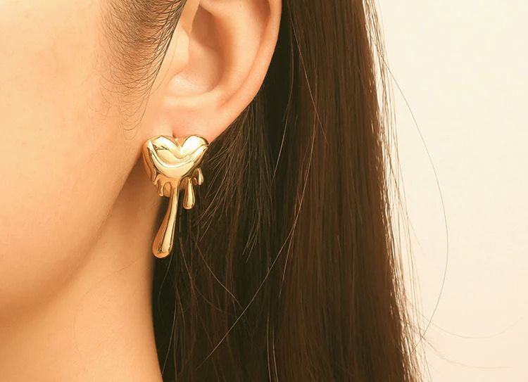 Unveil your Newly found treasure with A pair of gold heart Falling Droplets earrings!!