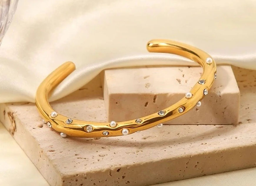 Ishira Dented 18K Gold Plated Pearl Cubic Zirconia Bracelet is a timeless classic with a smart and sleek design. Featuring pearls and CZ Diamonds, it's the perfect complement for your office attire. Pair it effortlessly with a minimal watch for an elegant and sophisticated look!!