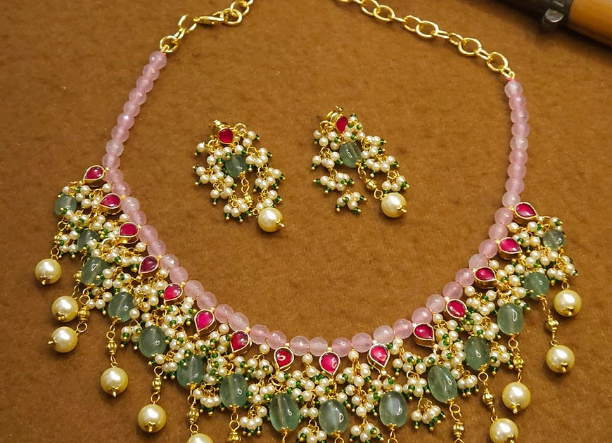 Kalpita Natural Onyx and Rose quartz Earring Necklace set!!