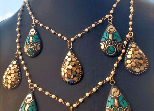 Elevate your style with our Handmade Kanksha Tibetian 2 Layer Pearl Laq Necklace which is crafted with Brass and Laq to give you classic and elegant look adorned with exquisite vibrant colorful pattern.
