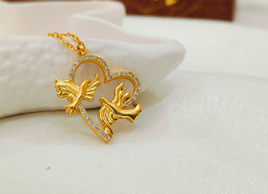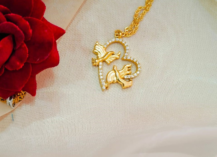 Koibito Birds CZ diamond Heart Pedant Chain Necklace