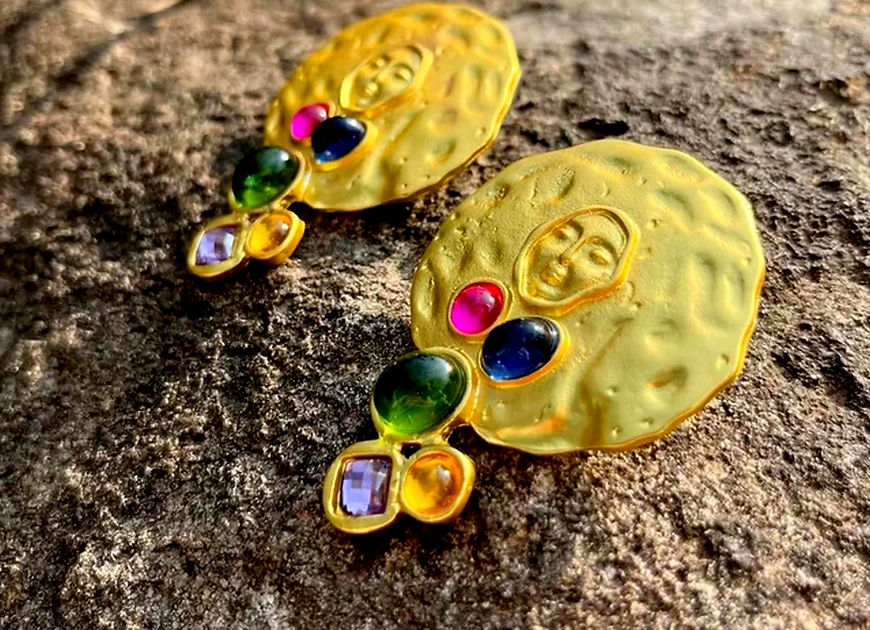 Kundanika Face Multi color Crystal Stud Earrings!!