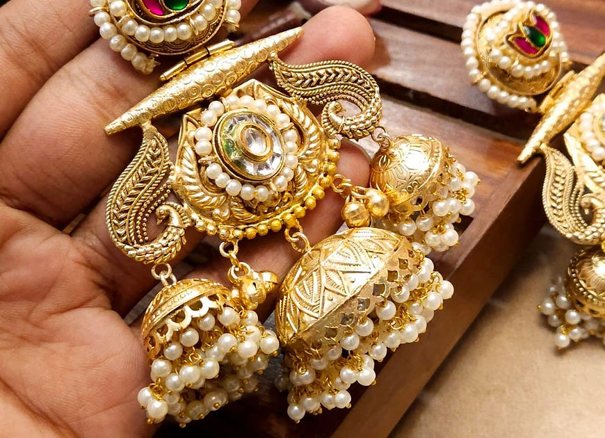 Timeless beauty crafted in precious Pachhi Kundan and Brass!!An elegant touch of shine, A touch of sophistication, Adore yourself with this beautiful Rajaka Jhumki Earrings!!
