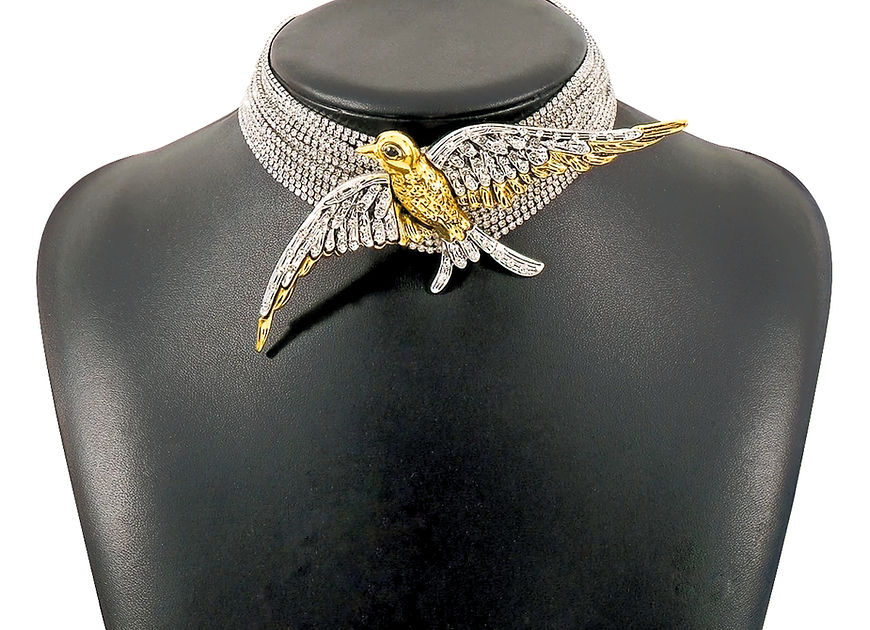 Shyena Bird Chocker statement Necklace is crafted of high quality brass with anti tarshish plating and adorned with delicate rhinestone studded bird is enough to catch the limelight and will make that glamorous look.!!
