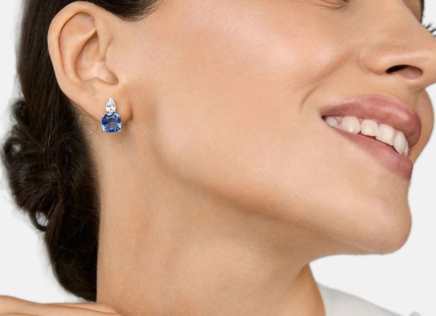 Titanic Blue Crystal Stud Earrings are adorned with cushion cut blue crystal and pear shape crystal with 18K gold plated Brass Earrrings features a classic design to give compliment you effortlessly on any attire!! Admire yourself with this beautiful Earrings!!