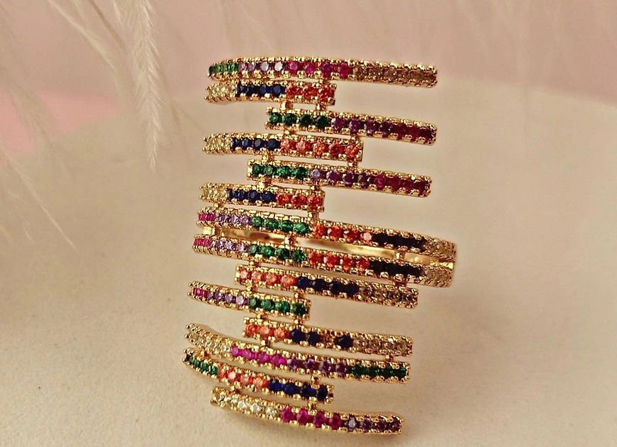 Vijeta Multicolor Solitaire CZ Stone Adjustable Finger Ring