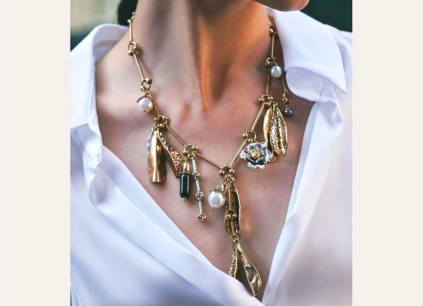 Vividha Leaf Flower Pearl Beads Charms Necklace!!